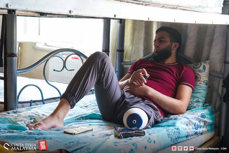 Kami ke Dar El-Esteshfaa, pusat pemulihan di sini yang menempatkan mangsa-mangsa perang yang terkesan secara terus di Syria.